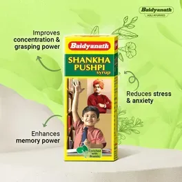 Baidyanath Shankha Pushpi Syrup 200ml is a 100% Ayurvedic brain tonic formulated to support memory, concentration, learning ability, and mental calmness. Enriched with powerful herbal ingredients like Shankhpushpi and Brahmi, it works as a natural memory support supplement and helps reduce stress, anxiety, and insomnia, making it ideal for students, professionals, and senior citizens.