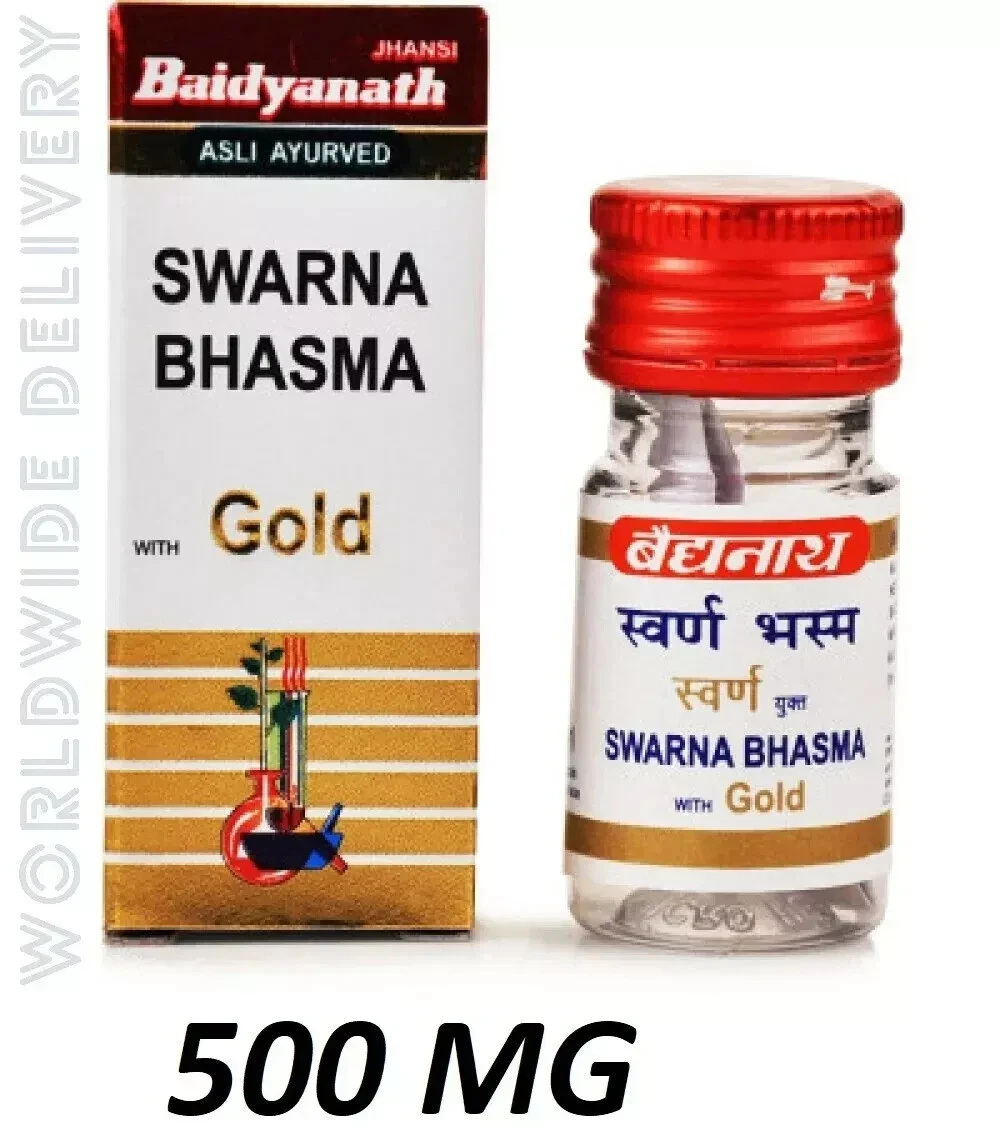 Baidyanath Swarna Bhasma with Gold is a premium Ayurvedic health supplement renowned for its potent health, stamina, and immunity-boosting properties. Made from pure gold (Swarna), this traditional Ayurvedic medicine has been trusted for centuries to enhance strength, vitality, mental clarity, and overall well-being.