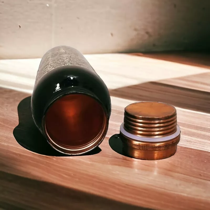 Stay healthy and hydrated with the Antique Pure Copper Bottle, crafted from 100% pure copper for a perfect blend of style and wellness. This ayurvedic copper water bottle helps balance the three doshas (Vata, Pitta, Kapha) as per Ayurveda, promoting better digestion and immunity. The antique design adds a touch of tradition and elegance, making it ideal for daily use at home, office, or while traveling.