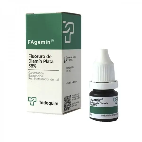 Fagamin Silver Diamine Fluoride 38% is a dental topical solution used in clinical settings by trained dental professionals. This high-concentration fluoride solution is designed for professional application as part of standard dental procedures in dental clinics, hospitals, or professional practices.