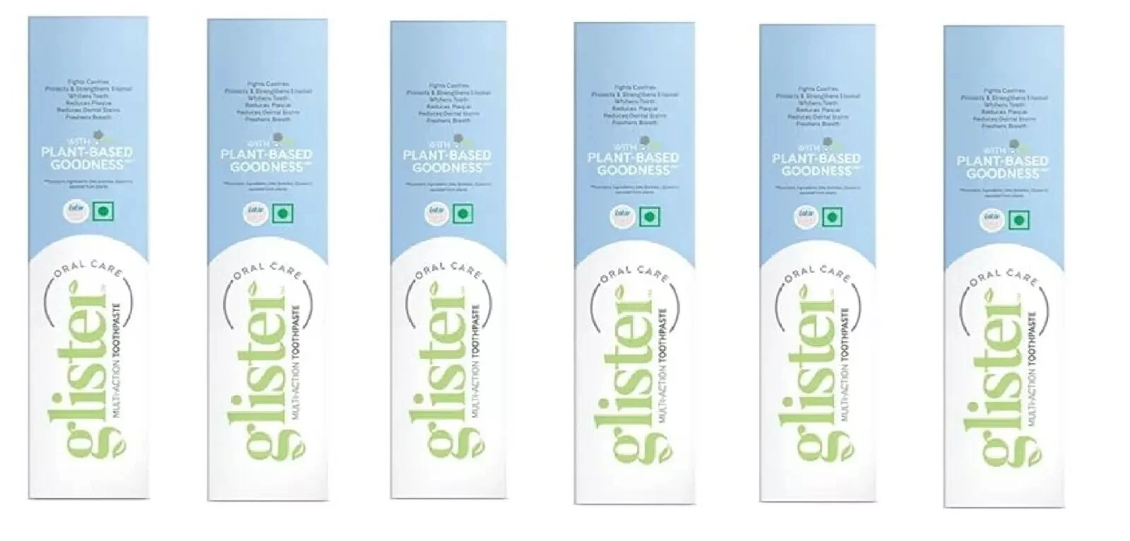 - 6 tubes of Glister toothpaste in one convenient pack