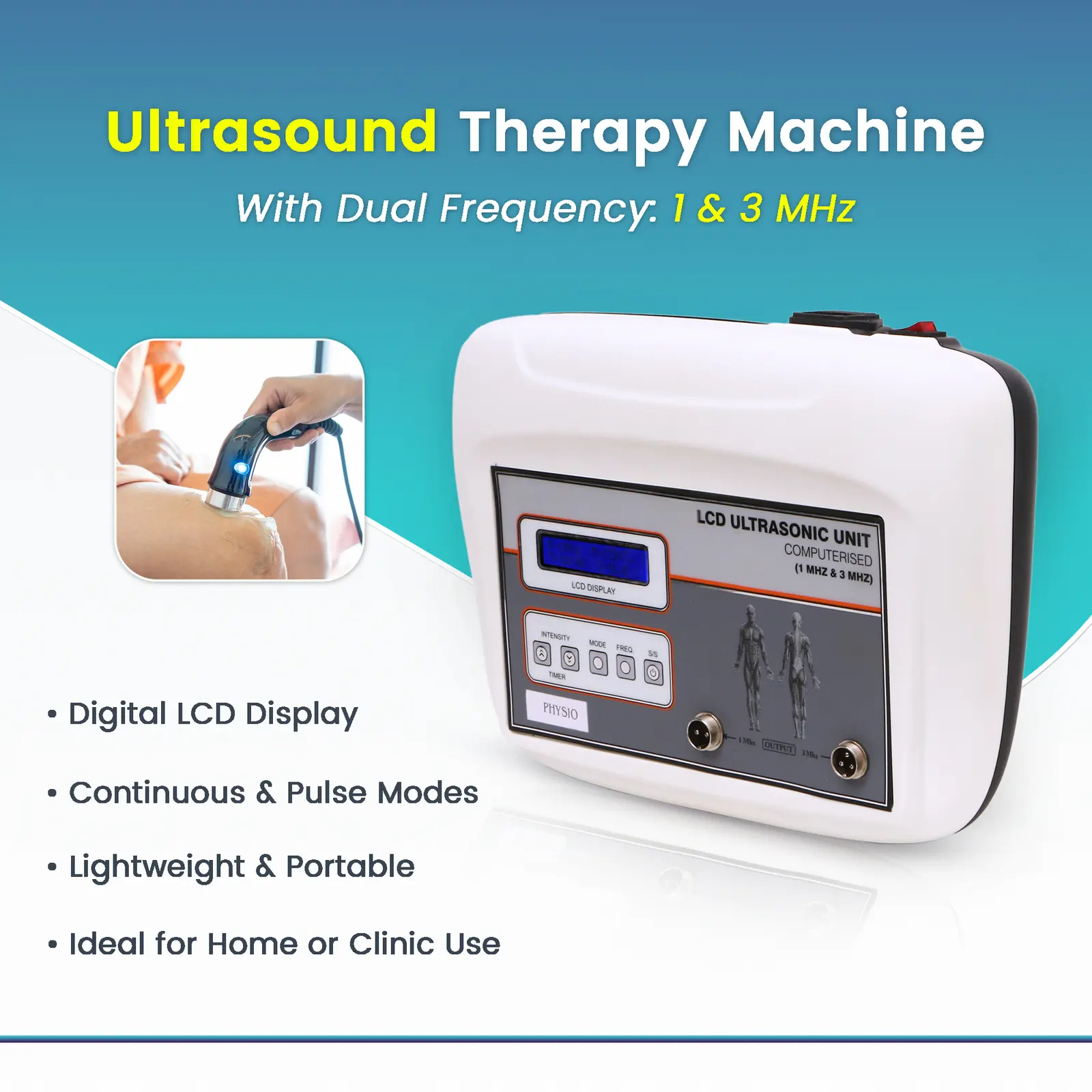 The LCD Ultrasonic Therapy Unit (1 MHz & 3 MHz) is a professional computerised physiotherapy device designed to provide effective pain relief and accelerated tissue healing through therapeutic ultrasound technology. Featuring dual-frequency operation, this advanced system delivers both deep tissue and superficial treatment, making it suitable for a wide range of musculoskeletal conditions.
