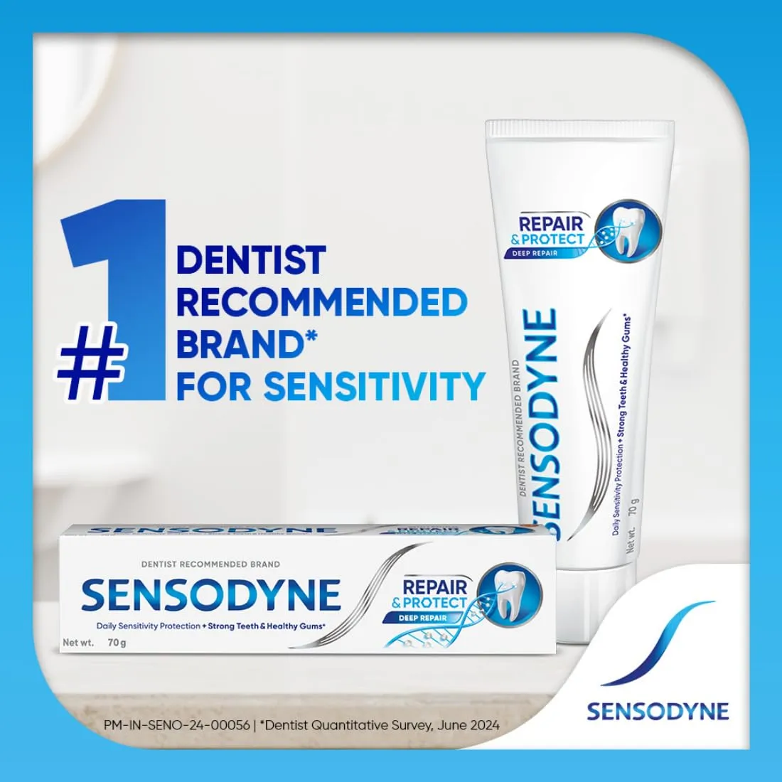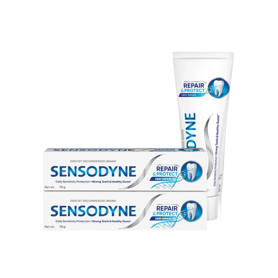 Sensodyne Repair & Protect Deep Repair toothpaste is available in three packs - 70 gm, 100 gm and 140 gm (70 gm * 2) combo pack. Brushing twice a day provides protection from tooth sensitivity. Always follow instructions and guidance included on the pack before use. Although this is not a color correcting toothpaste, it is designed to repair enamel and reduce sensitivity effectively.