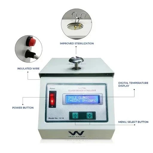 The Waldent Digital Glass Bead Sterilizer is a high-performance, compact sterilization solution designed for fast and effective sterilization of dental, medical, and surgical instruments. Using high-temperature glass bead technology combined with advanced digital PID microcontroller control, it ensures precise and consistent heating up to 240°C, eliminating bacteria, viruses, spores, and microorganisms within seconds.