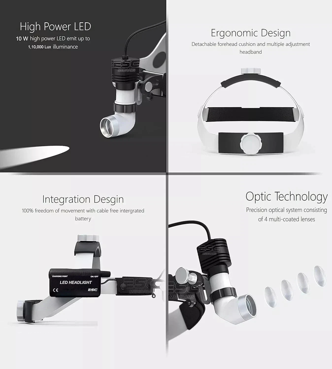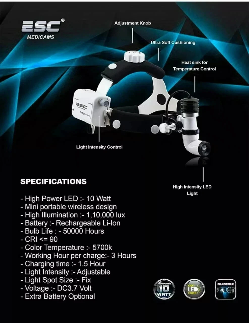 Answer: This wireless dental loupe light offers powerful 10W LED illumination, long battery life, and comfortable wear — perfect for dentists, surgeons, and ENT specialists needing mobility and brightness.