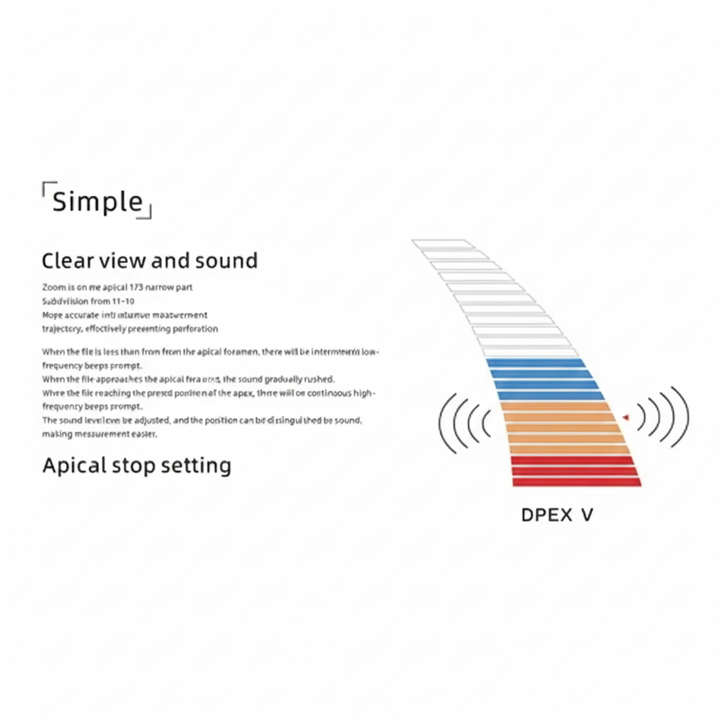 The Woodpecker DPEX V is an electronic apex locator designed for professional endodontic use. This device assists dentists in accurately determining root canal working length during endodontic procedures.