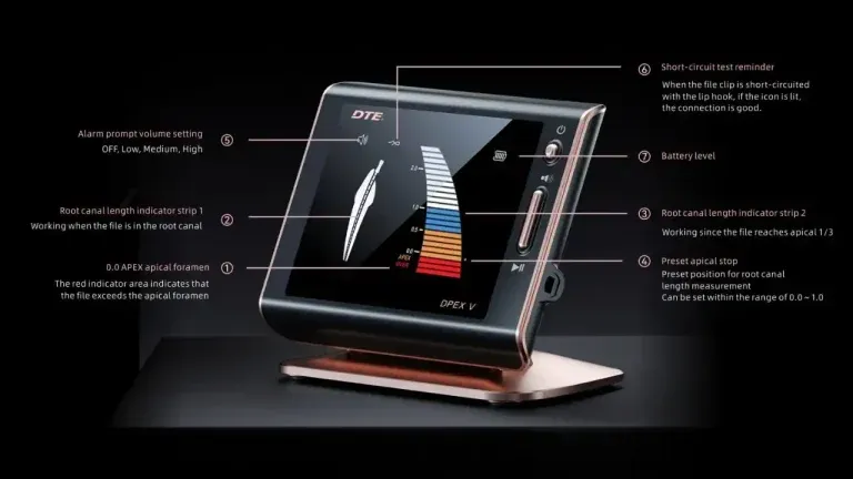 - Bright, clear display with intuitive visuals and built-in alarm function, enhancing precision during root canal treatment.